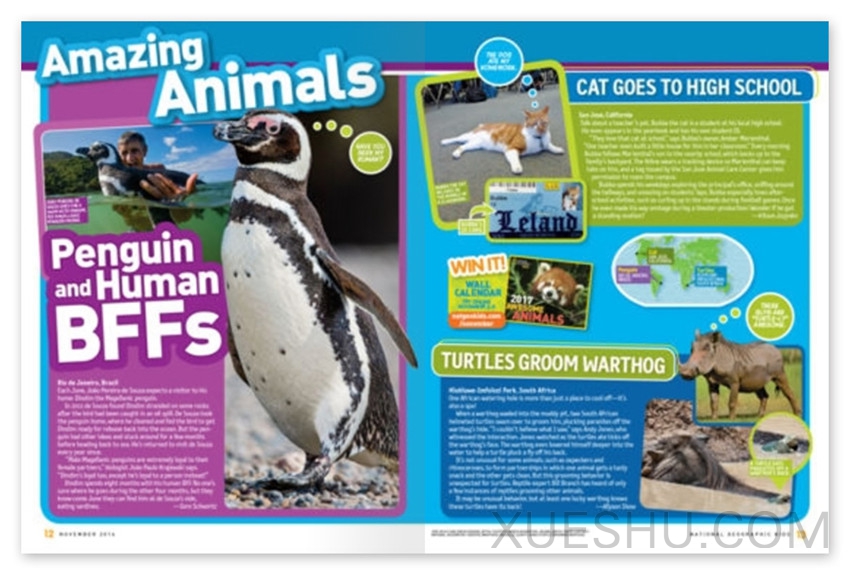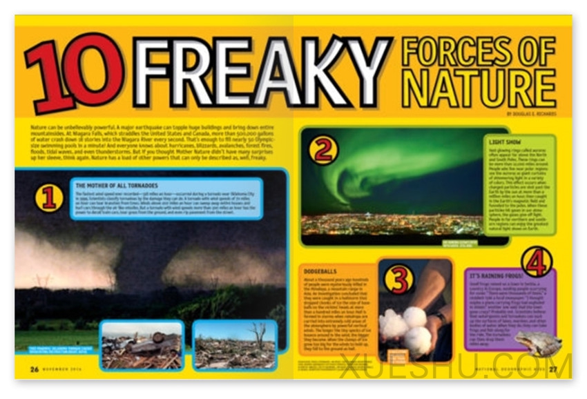 以8-14岁少年儿童为读者的地理刊物,指导他们亲身去认识世界,增长科学和自然界等知识,不仅能提升孩子的英语学习力,亦能启发想象力,献给所有想在地球冒险的小朋友们,是由美国国家地理学会出版的儿童杂志。