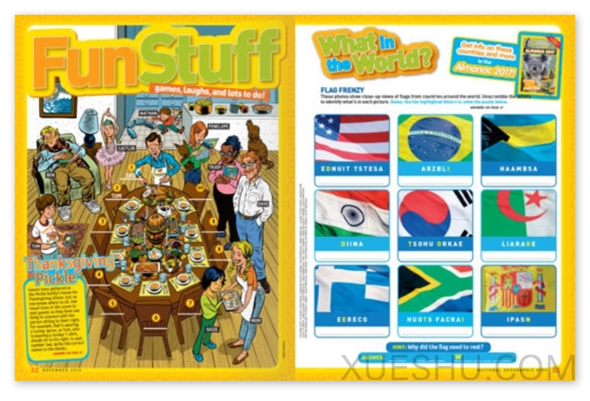 本刊涉猎广泛,包括了自然、历史、科学、技术、考古学及现代文学,孩子们在阅读杂志的过程中体会到的是快乐,甚至会忽略是在学习。美国发行量较大的少儿科普杂志!目前已有英文和另外31种当地语言全球出版,是目前全球广为人知的一本杂志,令人尊敬的杂志品牌之一,也是具品牌活力的杂志。